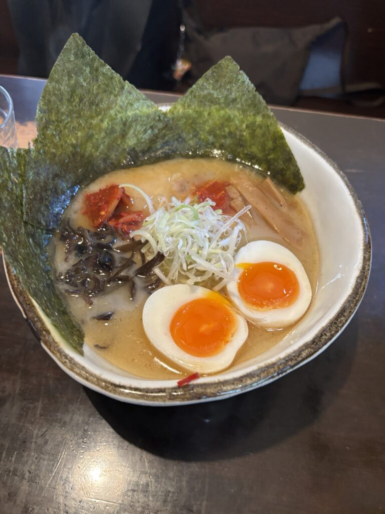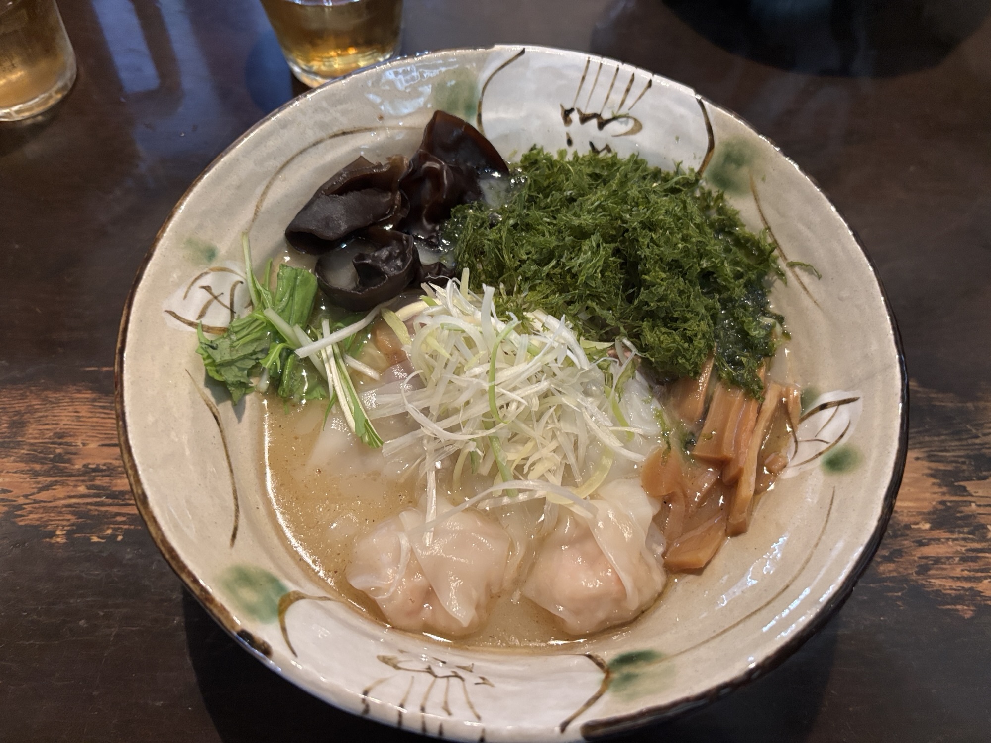 私が塩のワンタンと青のりトッピングを